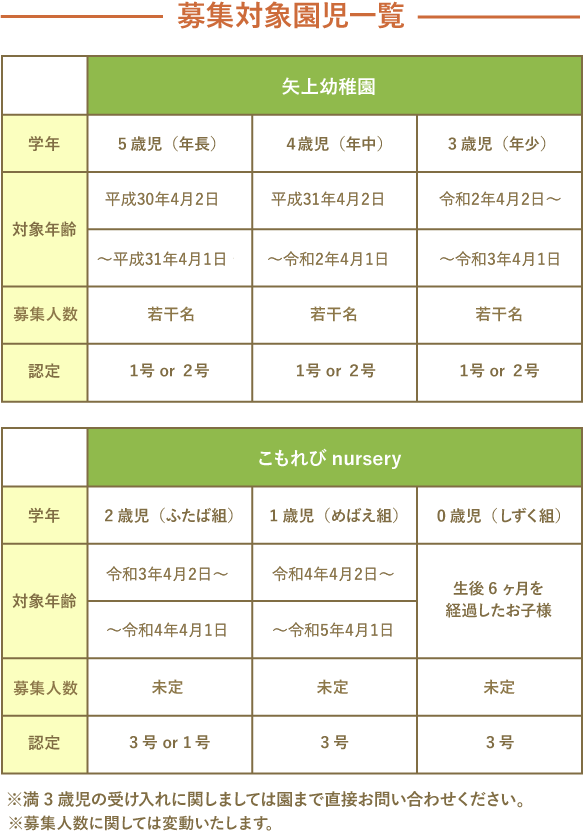 ※満3歳児の受け入れに関しましては園まで直接お問い合わせください。