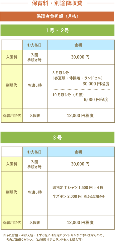 | 入園料 | 入園 手続き時 | 30,000円 |