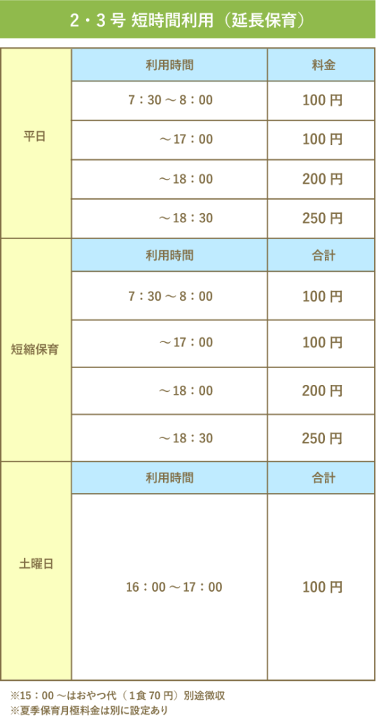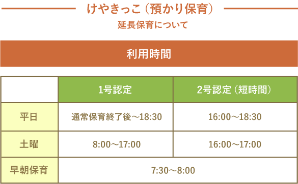 | 早朝保育 | 7 : 30~8 : 00 | |