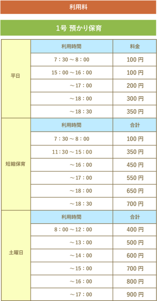 | 平日 | 通常保育終了後~18 : 30 | 16 : 00~18 : 30 |