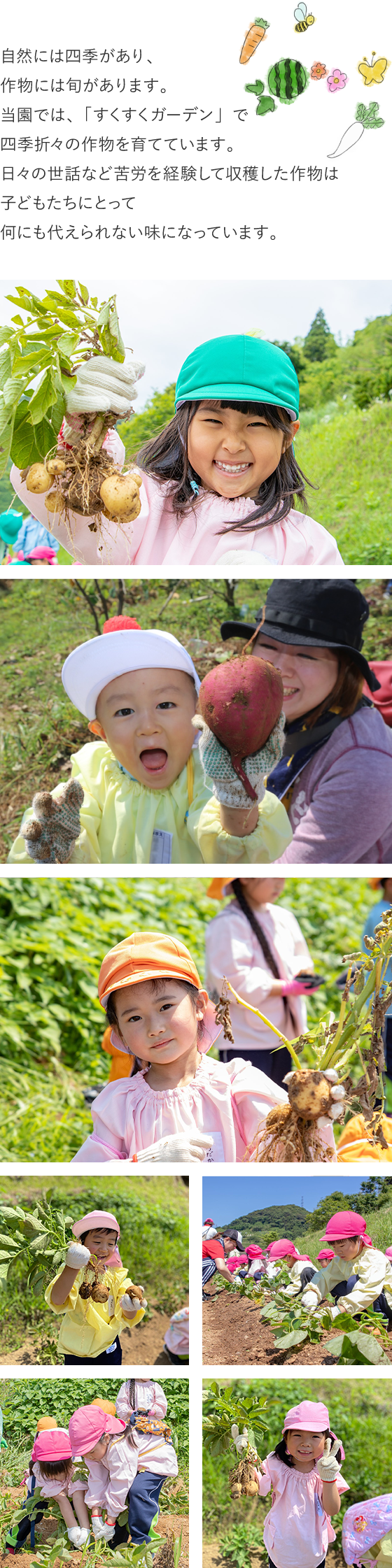 当園では、「すくすくガーデン」で四季折々の作物を育てています。