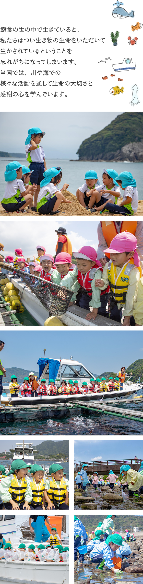 当園では、川や海での様々な活動を通して生命の大切さと感謝の心を学んでいます。