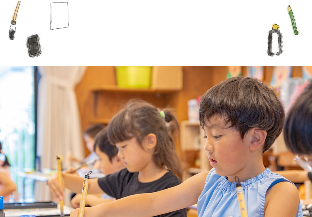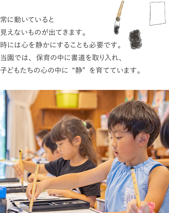 当園では、保育の中に書道を取り入れ、子どもたちの心の中に”静”を育てています。